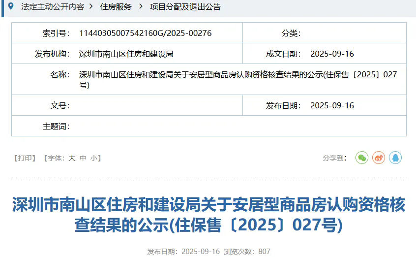发现公示信息与实际情况不符,请认购家庭于公示期内(9月23日18:00前)登录深圳市保障性住房统一轮候信息系统,在线提交信息变更申请,或持相关证明材料到深圳市政务服务中......