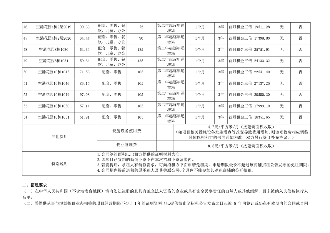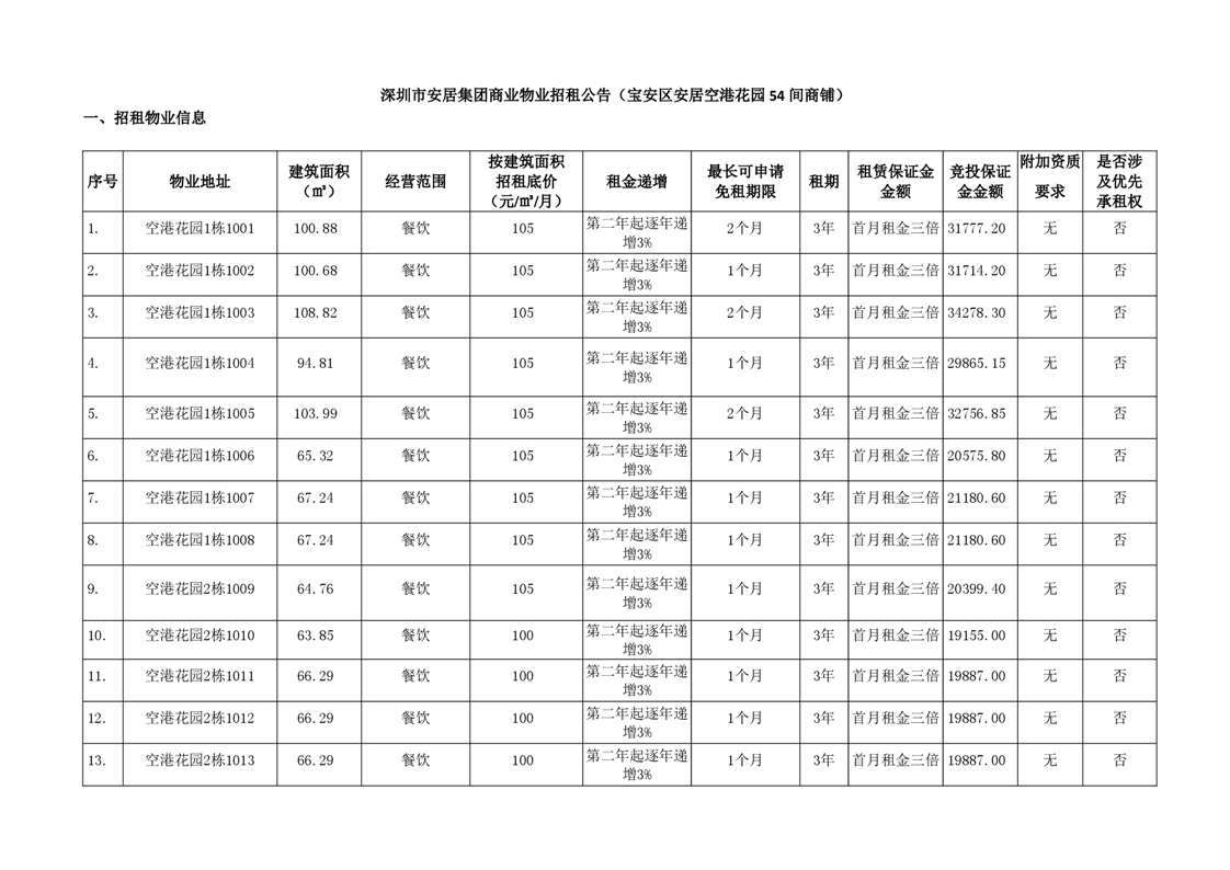 深圳市安居集团商业物业招租公告(宝安区安居空港花园54间商铺)