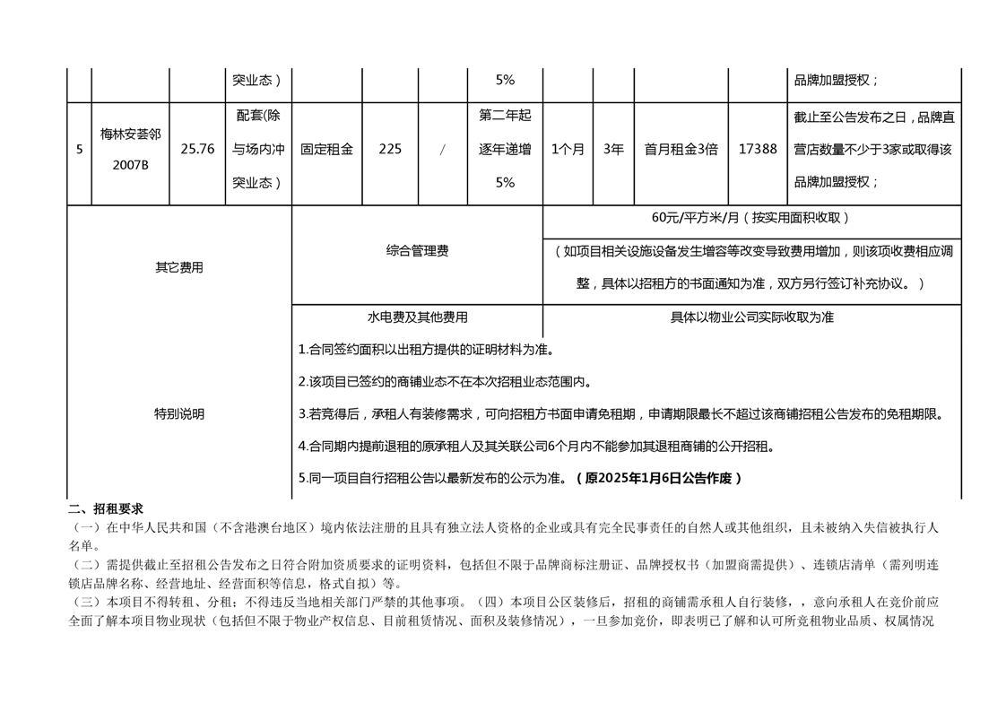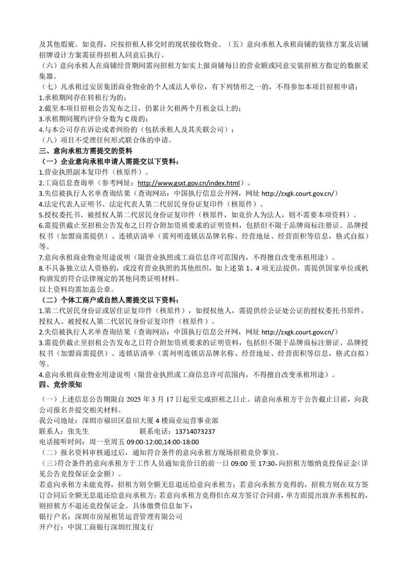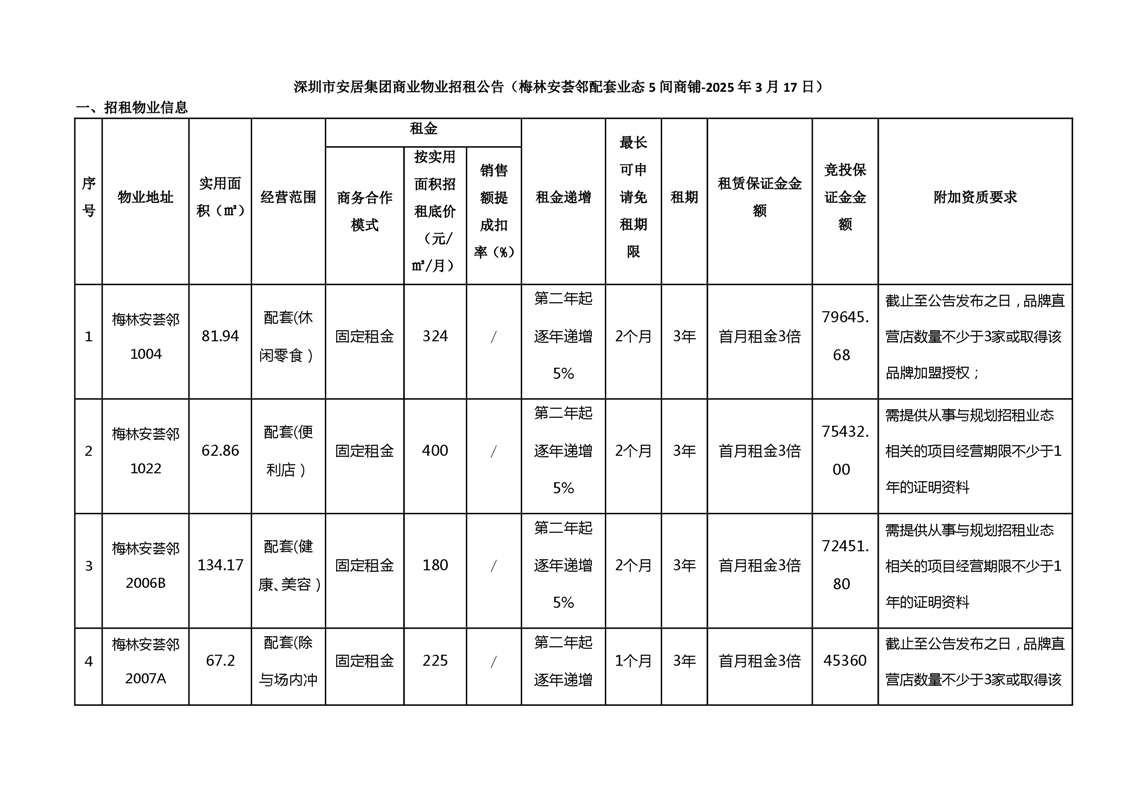 深圳市安居集团商业物业招租公告-梅林安荟邻(配套业态5间商铺)