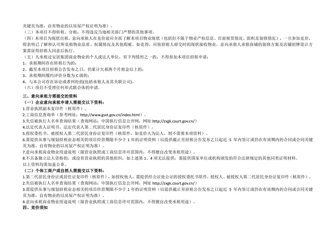 深圳市安居集团商业物业招租公告(龙岗区安居玥龙苑1014商铺)
