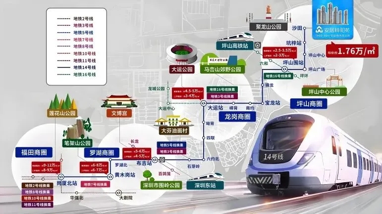 项目邻地铁14号线沙田站(始发站),可快速抵达福田CBD、9站至大运中心。