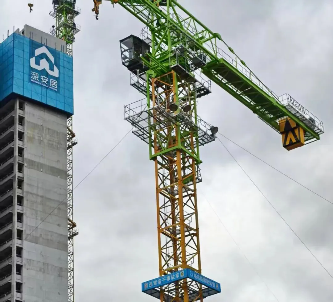 ▲ 盐田公交综合车场项目对塔吊采取“加装缆风绳+回转机构解除限制“双重防护