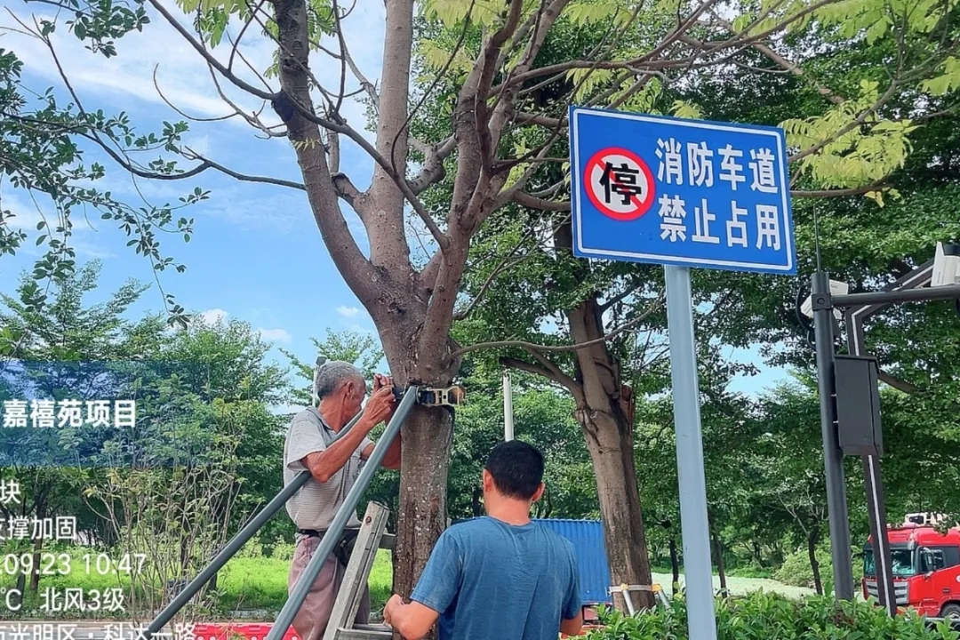 ▲ 光明区安居嘉禧苑项目进行树木支撑加固