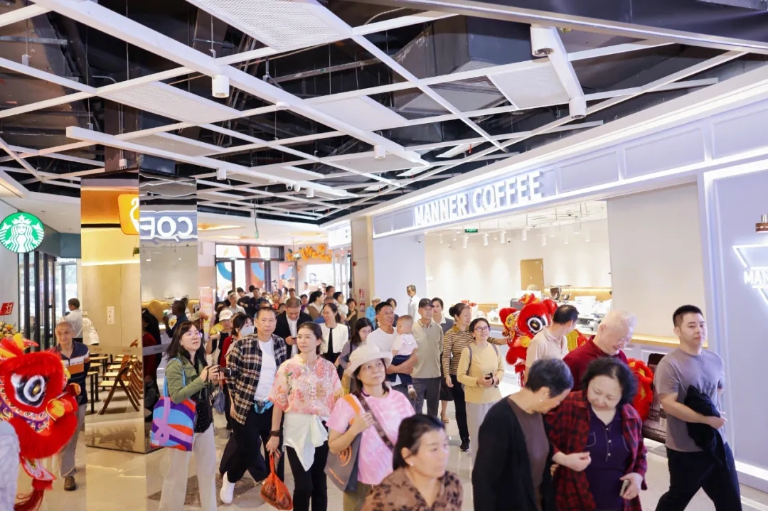 同时,为精准洞察社区居民需求,安居集团开展了2500份问卷调研与100位居民深度访谈,科学、全面地锁定了社区消费痛点与服务短板。基于需求调查,梅林安荟邻创新采用的“存量提质、有机更新”模式得以高效落地:成功引进盒马鲜生作为主力店,并引入宴客都、广玥轩、观湘庭等多家区域首进品牌,构建起覆盖“餐饮+零售+配套”的一站式业态体系。此次提升,高效服务于周边3公里内超20万常住人口,有效满足了居民多元化、高品质的生活需求,让老社区焕发新生机。