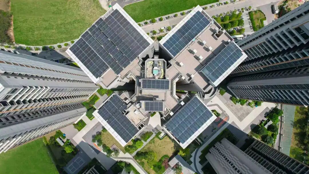 华章新筑项目成功打造了以“光伏、储能、充电、放电”为核心的智慧能源系统,通过整合先进技术,构建了一套高效、低碳的社区能源利用体系,光伏系统年发电预计可达55万度,成为深圳首个住宅类落地“光储充放”一体化技术项目,以及全市首批13个“光储直柔”试点项目之一。